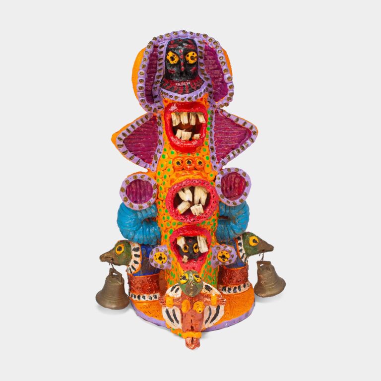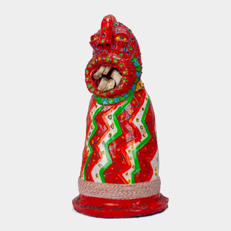 Escultura em cerâmica, acrílica, sino metálico e dentes de bonde.