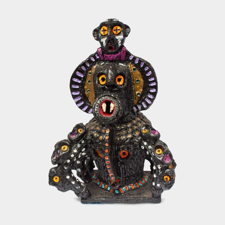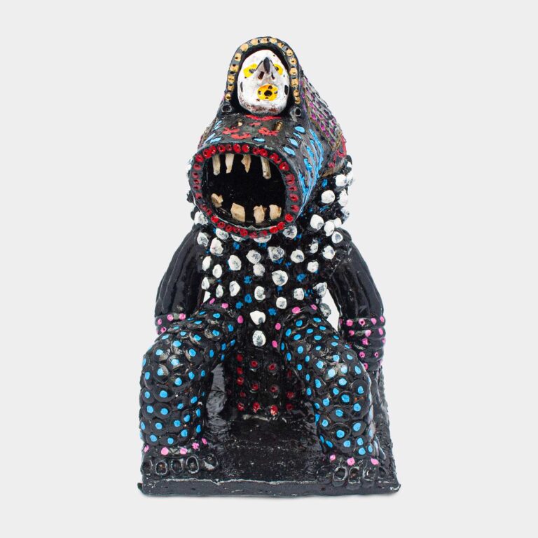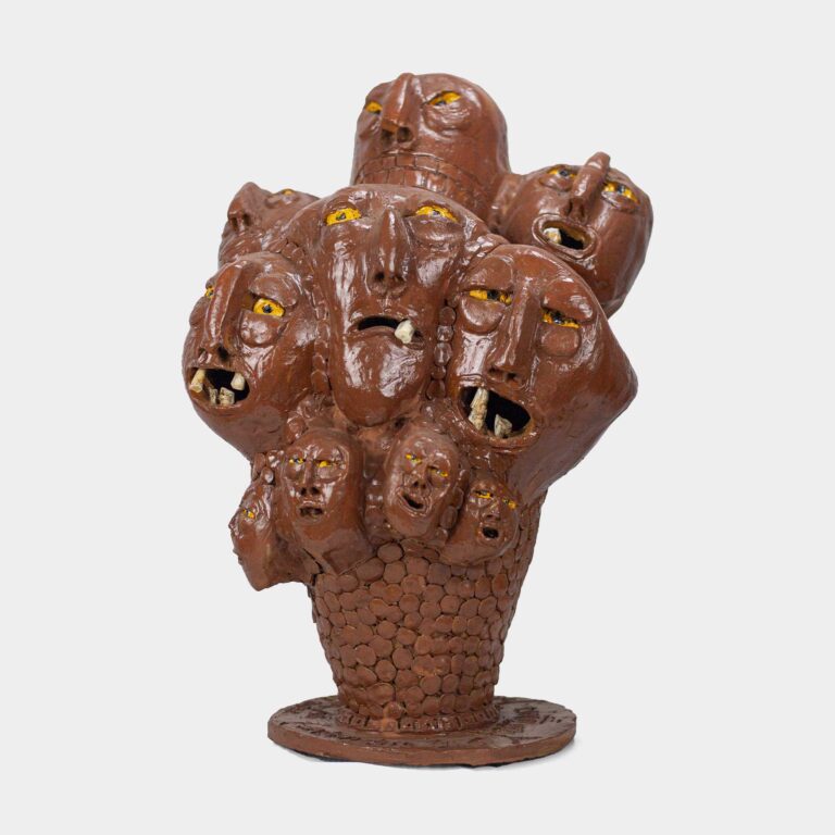 Escultura em cerâmica, acrílica e espinhos de cactus.